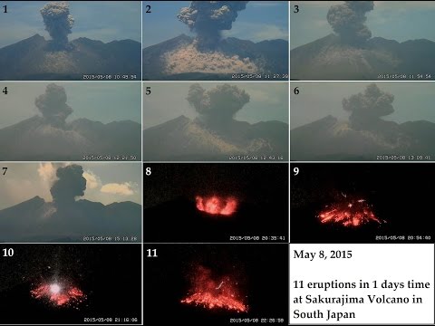5/08/2015 -- 11 Large volcanic eruptions in 1 day! Sakurajima Volcano i...